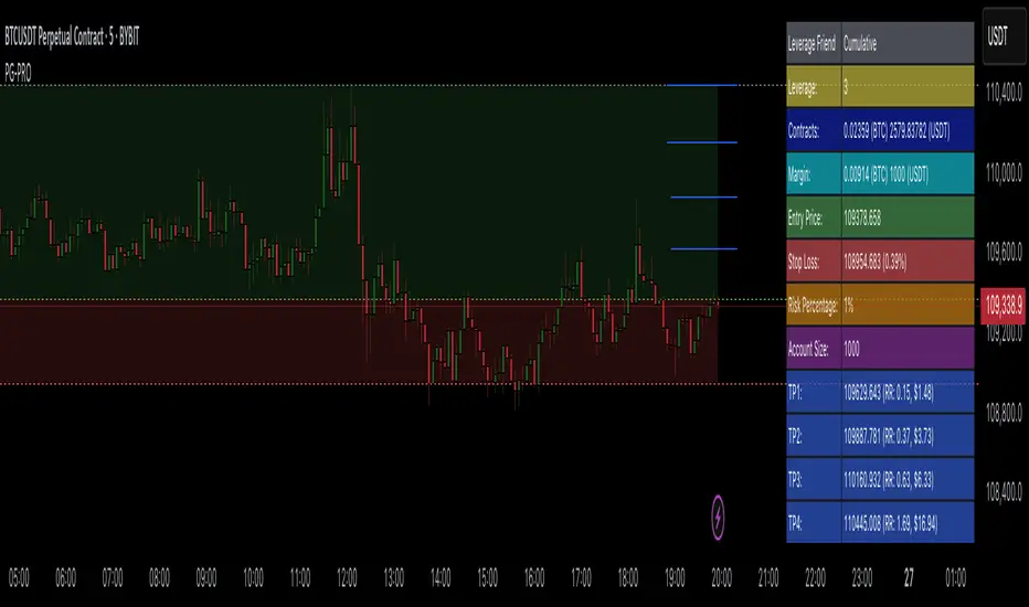 ProfitGuard Pro is a risk management and profit calculation tool that helps traders optimize their trades by handling position sizing, risk management, leverage, and take profit calculations. With support for both cumulative and non-cumulative take profit strategies, this versatile indicator provides the insights you need to maximize your trading strategy.