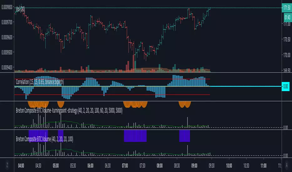 BTCUSD Vol compiled from 9 exchange sources - isolating volume spikes