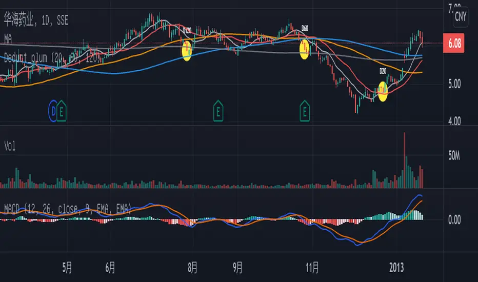 Price deduction annotation with 20, 60 and 120. This indicator is very useful for prediction of the future trend with the help of the simple moving average line, i.e. the SMA.