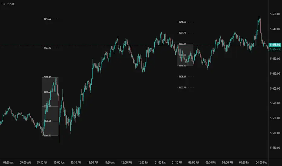 Shows the opening range for morning and afternoon session. 9:30-10:00 and 1:30-2:00 EST.