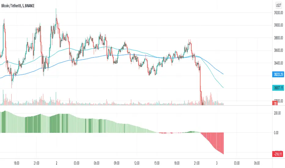 This indicator shows the difference between 2 EMA that reflects the relative change in momentum/speed of the short and long term trend, fast EMA and slow EMA respectively. You may change the input according to your preference. For me, this is just for testing and finding sculping strategy using in couple with other indicators.