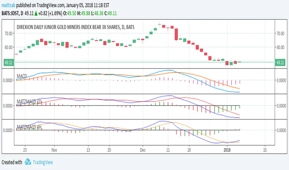 MACD 4 Hour View, with Green or Red Histogram bars for Rising or Falling Histogram.