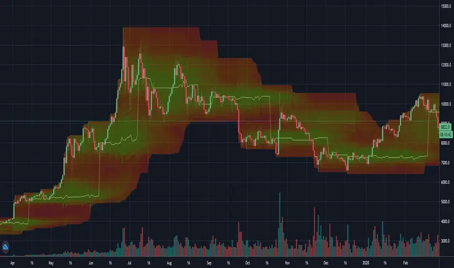 Simple script that shows the volume profile over a moving period as a heat map. Value area is the green area with the white line as the POC.