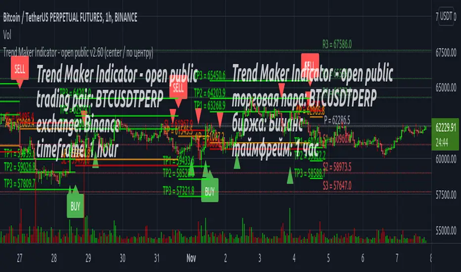 The Trend Maker indicator has a simple user interface and settings. The indicator is designed to work on the crypto currency market, but it is also suitable for working on the stock and foreign exchange markets.