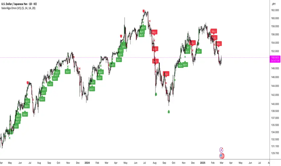 ValorAlgo Omni is a next-level algorithmic indicator built to eliminate noise optimize trade signals and give you razor-sharp execution. Written in Pine Script v6, it delivers fast accurate and repaint-free signals so you can trade with total confidence.