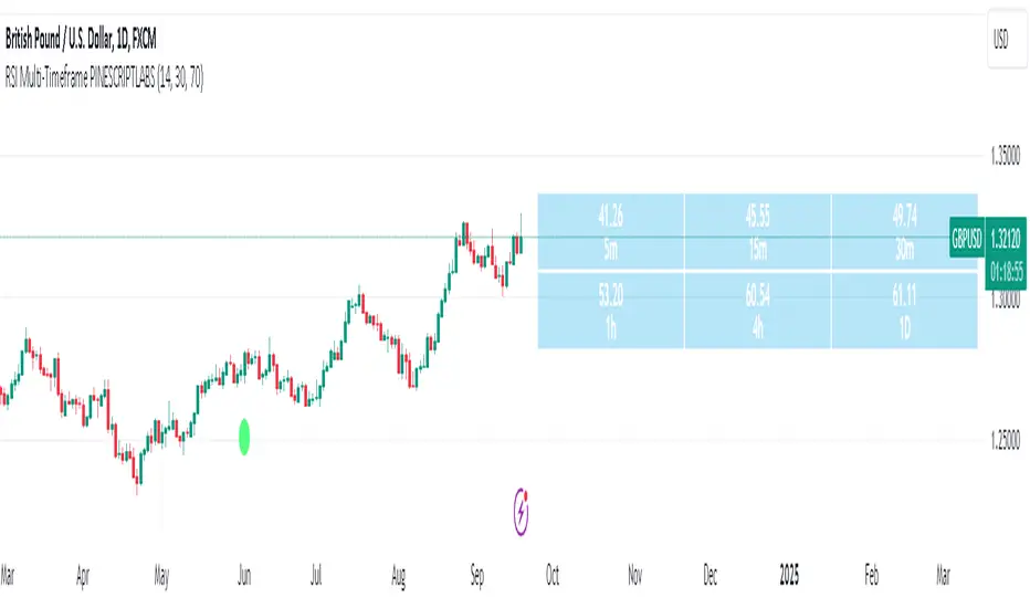 🔹 Intraday: Displays a table with real-time RSI values for the time frames of 5 minutes, 15 minutes, 30 minutes, 1 hour, 4 hours, and 1 day.