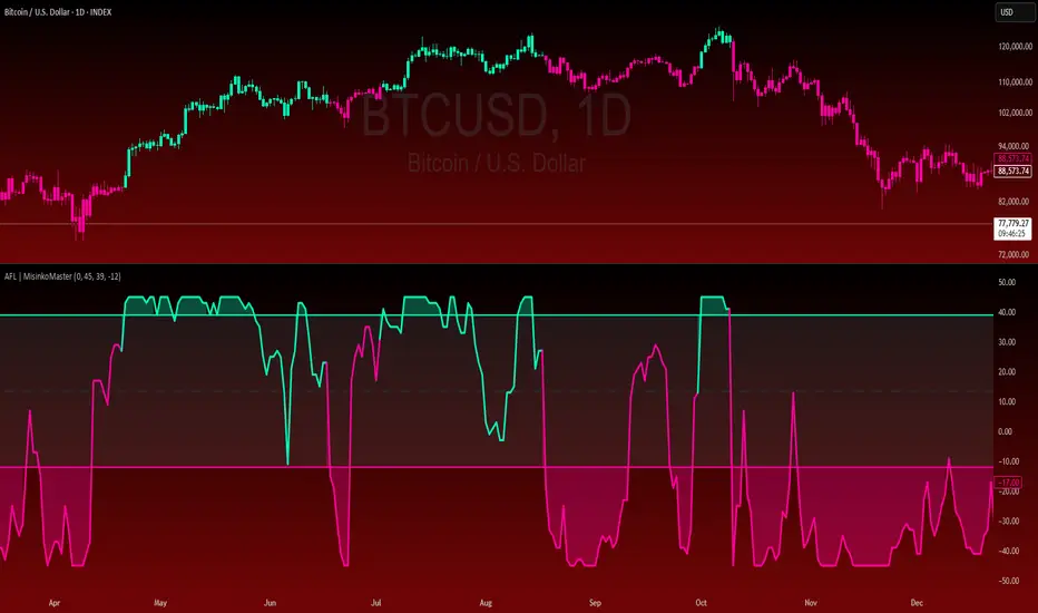 Upper Threshold – Score level above which an uptrend signal is triggered (default 39).