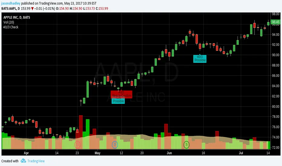 When all 3 Rules are met, it will create the Aqua colored label indicating that the 40/3 criteria is met and a reversal is possible.