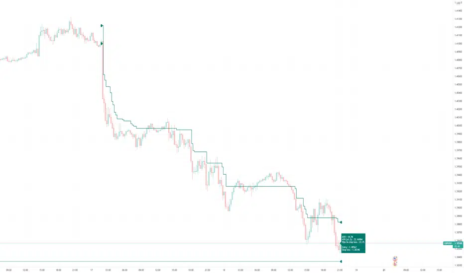 Set the date and time once trade is active and once ATR moves above(long)/below(short) entry price you can move your stop loss following the green triangles.