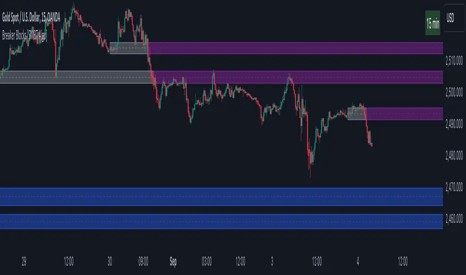 These components collectively create a system for identifying and trading market reversals and continuations. The breaker blocks provide a structural basis, highlighting areas of potential price reaction.