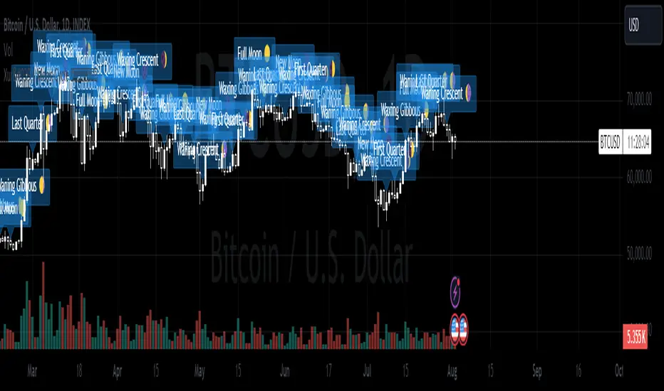 Quick Indicator that converts UNIX time into the current Julian Date then works out the current moon cycle and plots it on the chart.