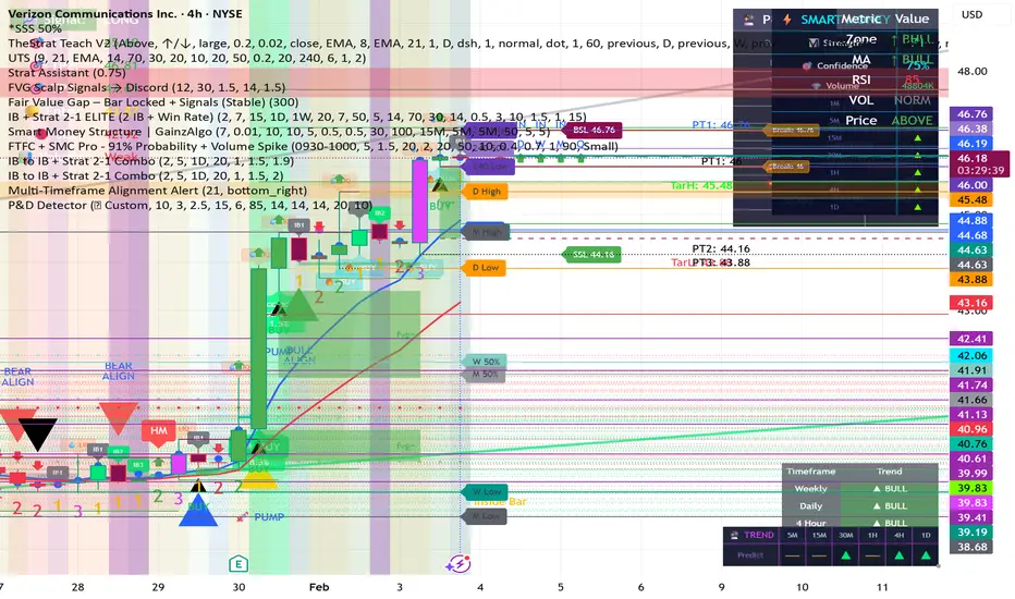 Status TableSimple 2-column table showing:TimeframeTrendWeekly▲ BULLDaily▲ BULL4 Hour▲ BULL30 Min▲ BULLStatus✓ BULLISH ALIGNED