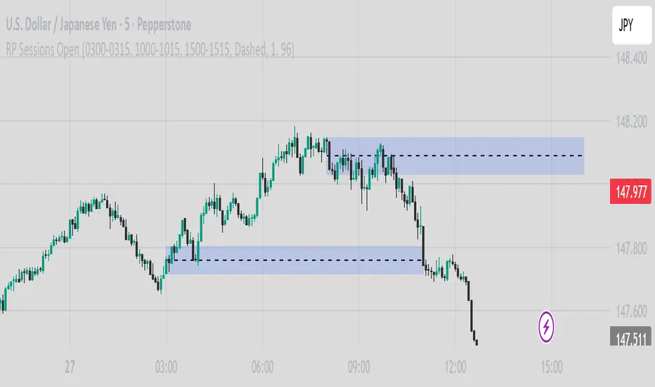 Setup: Add to a 15m chart (e.g., EURUSD, ES1!). Check your chart’s timezone (Chart Settings > Symbol > Timezone) and adjust session times if needed.