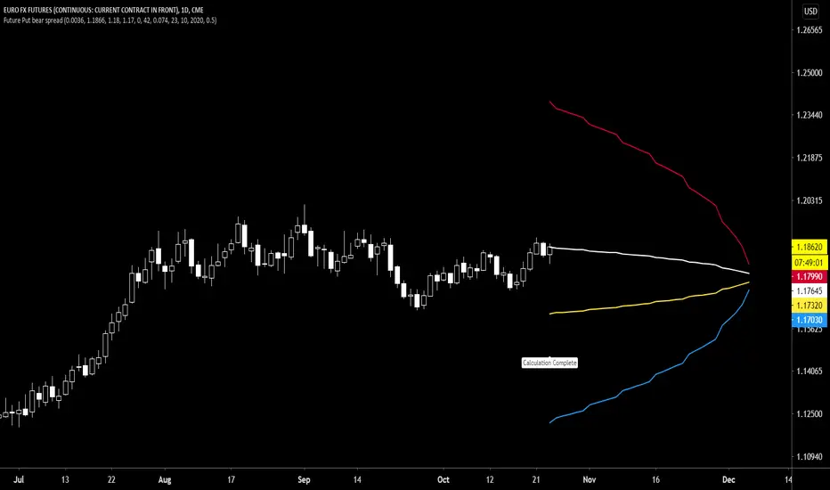 The indicator is based on the Black-Scholes model, which uses partial differential equations to determine the option pricing. Due to options non-linear behavior, it is hard to visualize the option price. The indicator calculates the solutions of the Black-Scholes equation and plots them on the chart so traders can view how the option pricing will behave.