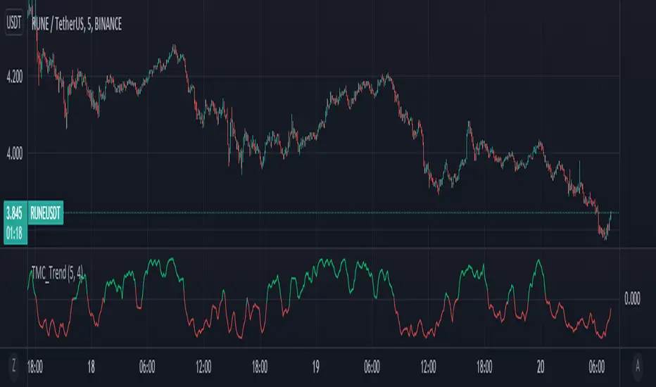 Added a new trend determining method called trailing, it simply works by charting the current furthest the indicator went in the direction of the indicated trend, and sees if it falls to far from this number, if it does the line color is darkened and it is considered a weak/failing trend. This furthest number is reset when the indicator hits the zero line.Open-source script