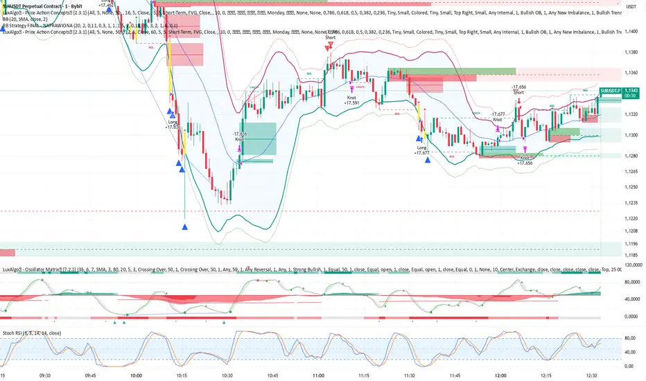 strategia BB plus świece volumenowe. Wybicie procentowe poza wstęgi bolingera ustawiane ręcznie plus stochastic RSI.