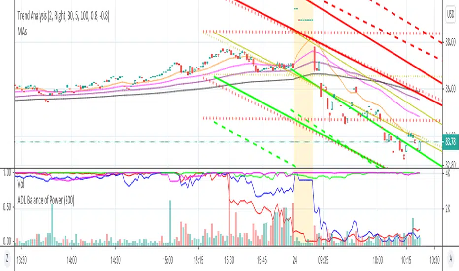 This script brings together Price (blue), Volume (red) in form of adjusted ADL (including gaps) and every ADL candle is split into Buying Volume ADL (green line) and Selling Volume ADL (magenta).