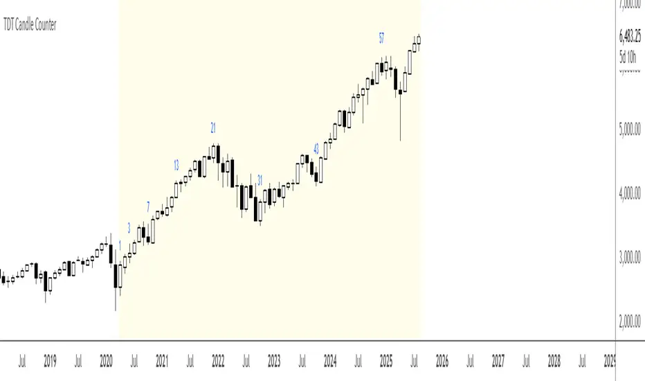 This indicator allows you to count candles inside a custom date range and display labels directly on the chart.