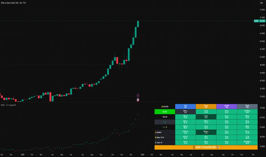 Volatility Squeeze: Uses the relationship between Bollinger Bands and Keltner Channels. When the Bollinger Bands compress inside the Keltner Channels, the Reactor turns GRAY, indicating a "Coiling" state (potential explosive move incoming).
