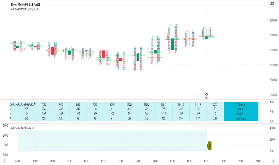 Volume Footprint Statistics - Script showing table with basic statistics about Up and Down Volume inside the candle.