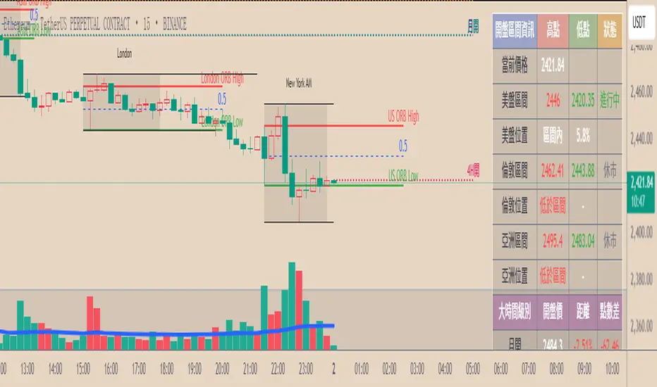 A lightweight utility that instantly plots the opening range for a selected session (Asia, London, or New York) on any timeframe, including an optional 0.5 σ mid-line to highlight the session's mean price.