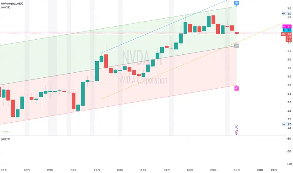 The Linear Regression Channel [GOODY] indicator is a versatile tool for traders, providing valuable insights into price trends and potential reversal points. It plots two linear regression channels on the chart, helping you visualize price dynamics and make informed trading decisions.
