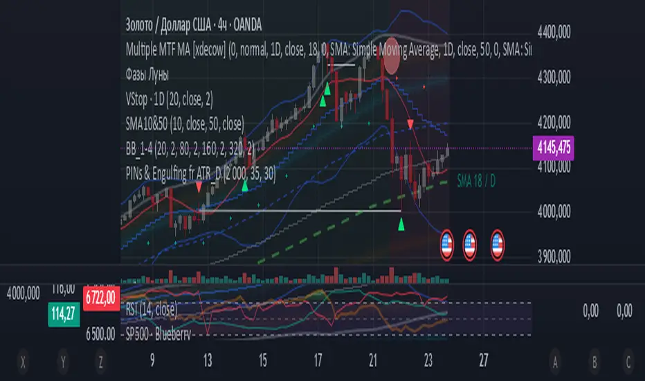 Я использую индикатор на H4,, т.к. мне интересны только реально существенные реакции в движениях цены, поэтому по умолчанию во входных параметрах стоят размеры свечек 30 и 35.