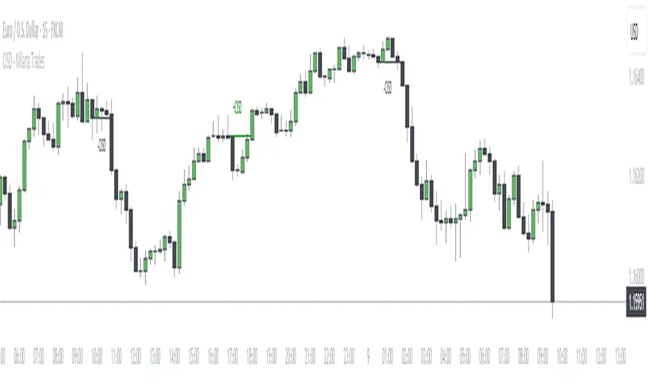 Once a CISD is detected, the script dynamically projects a horizontal reference line at the validated structural level and plots a clear label (+CISD or –CISD) at the break location.