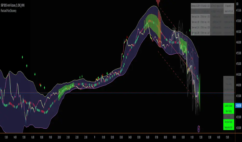 A Population Sampled linear regression model that provides additional detail about the distribution moments (skew, kurtosis, variance and mean) as well as providing indicators that track when a pivot has enough momentum to trade on as well as expected ranges of future price action based on Std Devs.