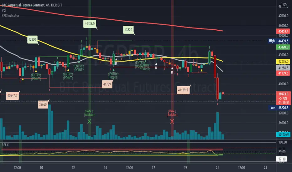 In Learner mode (Settings -> Enviroment Learner), you can see pivot points with floats values, color change for high bars, ema/ sma cross movements with vertical lines and texts (Golden Cross, Death Cross, Upward movement, Downward movement), green bar over red bar and ema 20 support (ENTRY POINT), trend arrows and supports / resistances.