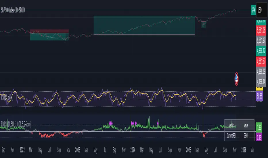 This indicator analyzes the relationship between Price and RSI. It doesn't just show you the current RSI value; it compares the current Price-to-RSI relationship against thousands of historical examples to see if the market is behaving "normally."