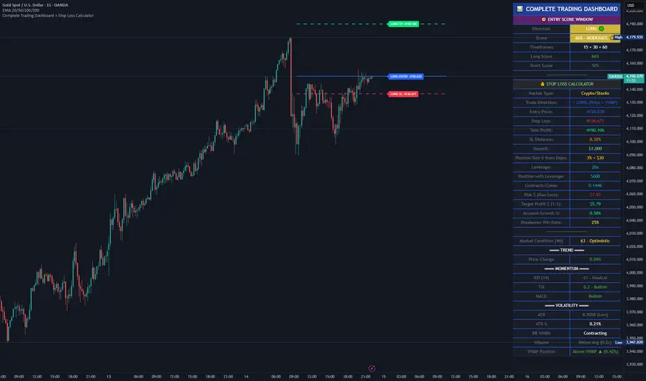 1. **Entry Score shows:** LONG 87% ⭐⭐ (EXCELLENT!)