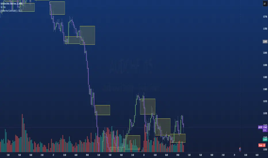 Purpose: Tracks first x candles of each hour to define a price rangeCustomizable settings: