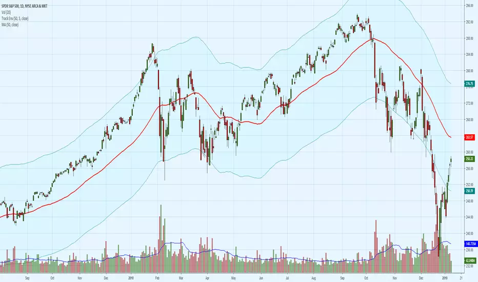 Use this channel to help control your emotional buying. You can follow the lead of the Mutual Funds & other Institutions. Institutions will buy between the MA and the upper band, but will slow or stop approaching the upper band. They will sell below the MA but not below the lower band. If ranging between the MA and the lower band they will start raising cash in anticipation of redemptions. Works best with a separate 50 SMA overlaying the centerline. This is a simple percentage offset envelope, not a Bollinger Band, Keltner Channel or Standard Deviation Channel.