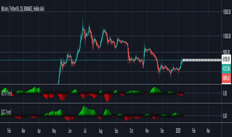 Altcoins-Trend is a technique that shows how much Altcoins is dominating the Marketcap and it's effect over the whole Crypto Market ,and that will show you alts season in each time frame because trend is relative .