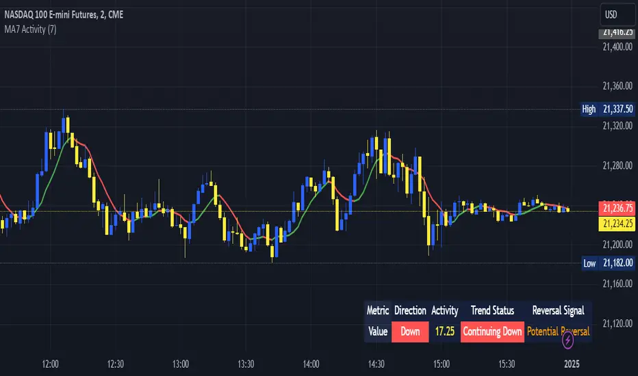 - **Reversal Signal**: Alerts when the price is close to the MA7, indicating potential changes.