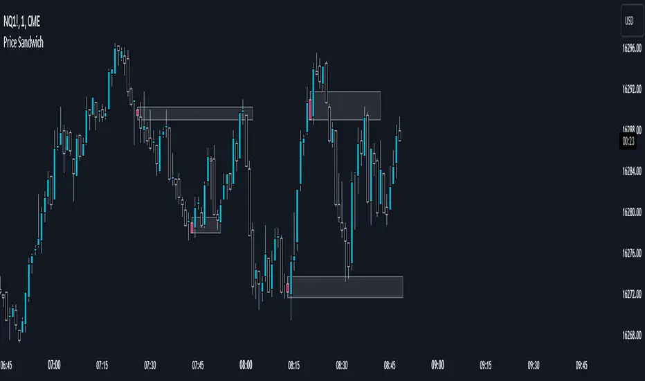 indicator("Price Sandwich", overlay=true) //makes this script an indicator, overlay=true to make it a part of the main chart