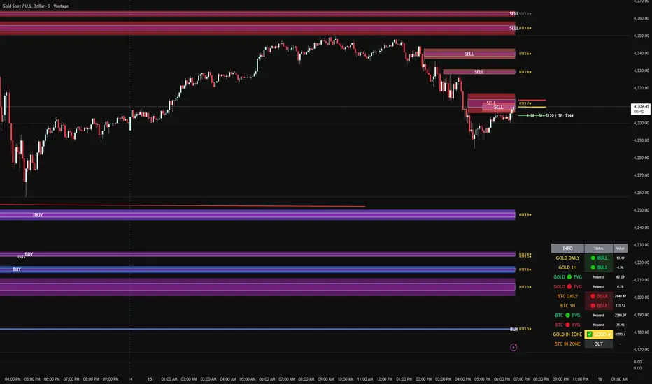 This powerful indicator identifies and tracks Fair Value Gaps across two customizable higher timeframes (HTF), providing traders with precise entry zones, strength ratings, and real-time alerts for high-probability trading setups.
