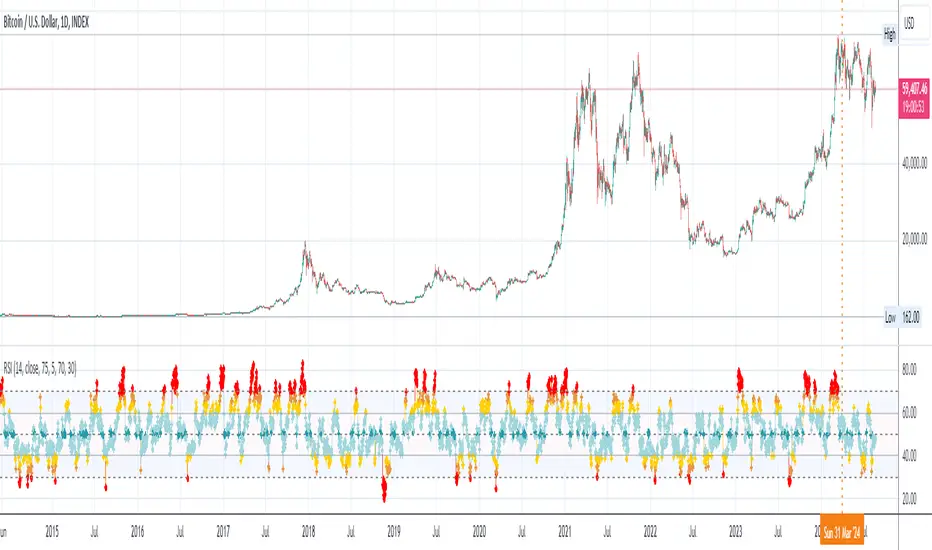 - Updated UI to see overbought and oversought values easier.- Added ability to shrink the value of the RSI to get less signal than the original RSI, because sometimes too many signals are not a good thing for trading.