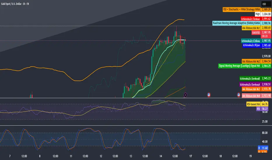 This script is designed for TradingView and serves as a trading strategy (not just a visual indicator). It's intended for backtesting, strategy optimization, or live trading signal generation using a combination of popular technical indicators.