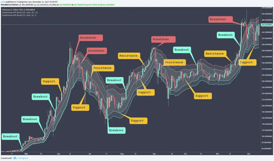 This indicator is completely customizable, so compiling multiple sized bands on top of each other may create a strong competitive edge.