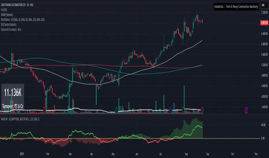 An optional feature (enabled by default) also calculates and shows the turnover, derived from Volume × VWAP, expressed in crores (₹). This helps traders instantly assess both participation and the monetary value being traded in real time.