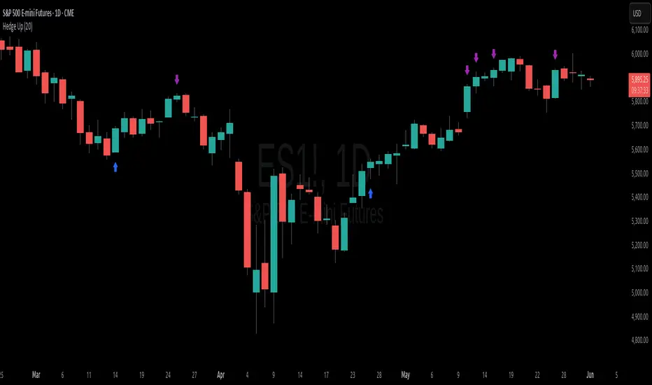 Get alerted to market downturns days and sometimes weeks in advance. Works exclusively on S&P 500 financial instruments (such as SPX, ES1! or SPY). This indicator marks a warning sign above the bar when a warning signal is generated. You can also configure the indicator to send you an alert using TradingView's native alert system.