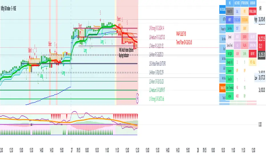 The tool is built on the principle of "Multi-Timeframe, Multi-Indicator Confirmation." It avoids relying on a single signal. Instead, it seeks confluence between momentum, trend, market structure, and volume data across different components (underlying, call, and put) before suggesting a trade.