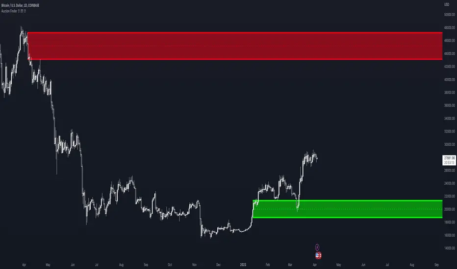 Auction Finder is a technical indicator used in financial markets to identify supply and demand zones or auction areas on a price chart. When the indicator confirms a supply or demand zone, the box representing the zone will be filled with either all-green (for confirmed demand) or all-red (for confirmed supply) color.