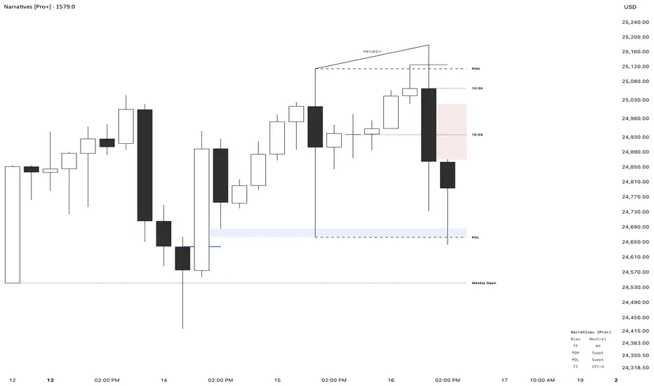 Narratives [Pro+] is a comprehensive trading indicator designed to help traders build a structured narrative around price action. Built on the concepts of Inner Circle Trader, GxT Profiling, and HTF Analysis, It integrates advanced Smart Money concepts such as Fair Value Gaps, SMT Divergence, Liquidity Sweeps, Precision Swing Points, and Session Levels — all within one cohesive and adaptive system. Explore the features below: