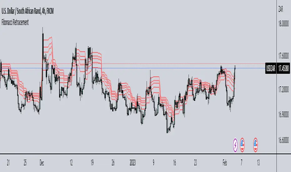 This script calculates the low and high of the past 14 candles and uses those values as the start and end points for the retracement. The script then plots lines at the key Fibonacci retracement levels (23.6%, 38.2%, 50%, 61.8%, and 76.4%) for reference. Traders can use these levels as potential areas of support or resistance, and watch for price action at these levels to help determine the direction of the market.