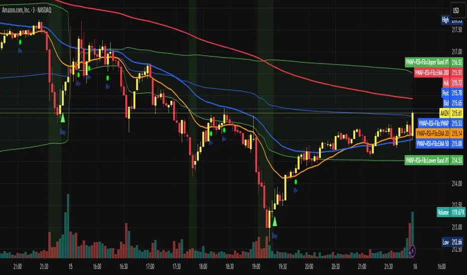 Purpose: This script is an overlay indicator for technical analysis on charts. It combines multiple tools: VWAP, RSI signals, and Fibonacci levels.
