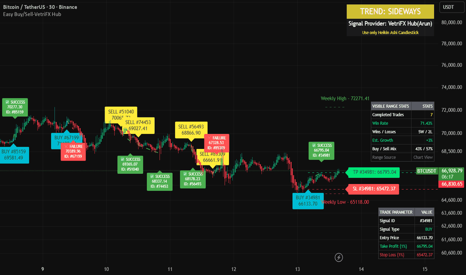 Server-Side Hooks: Includes alertcondition() functions for "VetriFX BUY" and "VetriFX SELL," allowing the script to be connected to external trading bots or mobile push notifications.