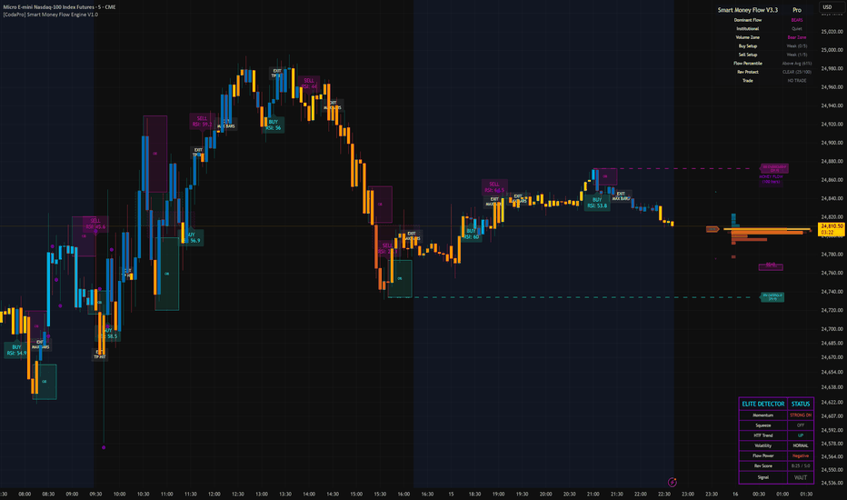 - Dashboard and money flow profile update on current bar for display purposes only and have no impact on signal generation